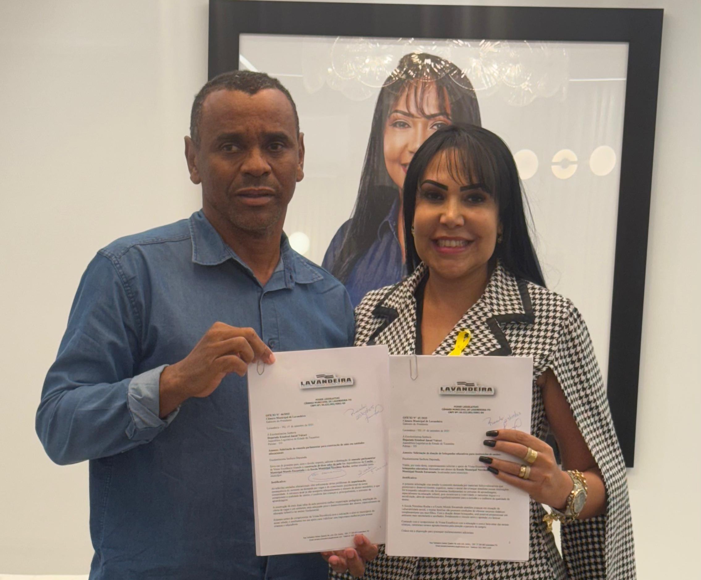 O vereador Dixim (PSD), de Lavandeira, esteve nesta terça-feira, 23, no gabinete da deputada estadual Janad Valcari (PL) para solicitar apoio, por meio de emenda parlamentar, visando a construção de salas de aula em unidades educacionais do município e a doação de brinquedos pedagógicos para as mesmas instituições de ensino.